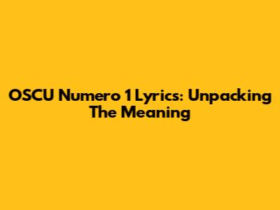 OSCU Numero 1 Lyrics: Unpacking The Meaning