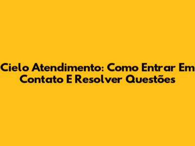 Cielo Atendimento: Como Entrar Em Contato E Resolver Questões