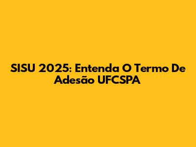 SISU 2025: Entenda O Termo De Adesão UFCSPA