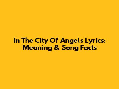 In The City Of Angels Lyrics: Meaning & Song Facts