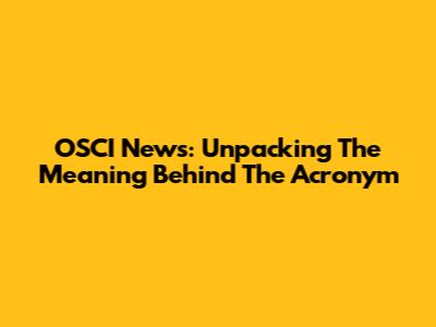 OSCI News: Unpacking The Meaning Behind The Acronym
