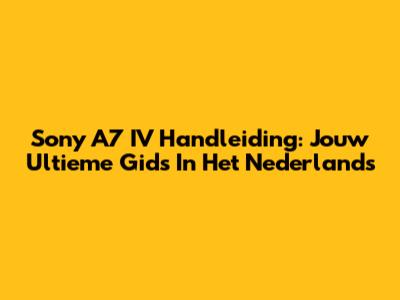 Sony A7 IV Handleiding: Jouw Ultieme Gids In Het Nederlands