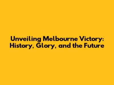 Unveiling Melbourne Victory: History, Glory, And The Future