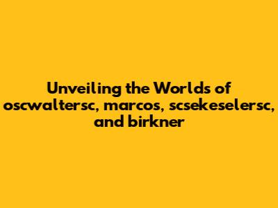 Unveiling The Worlds Of Oscwaltersc, Marcos, Scsekeselersc, And Birkner